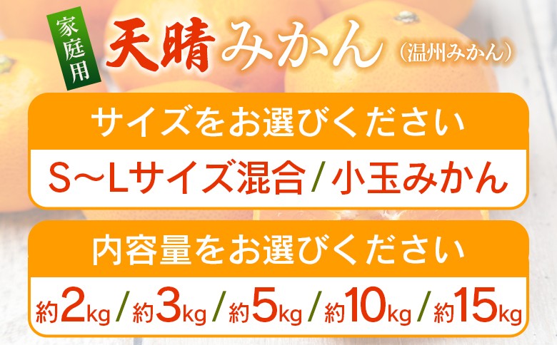 <愛媛県明浜産 天晴みかん(温州みかん)約2kg/3kg/5kg/10kg/15kg 小玉サイズ/S~L混合> 選べる 家庭用 訳あり ワケアリ 果物 くだもの フルーツ ミカン 柑橘 特産品 笑丸 愛媛県 西予市【常温】『2026年11月中旬~2027年1月上旬迄に順次出荷予定』