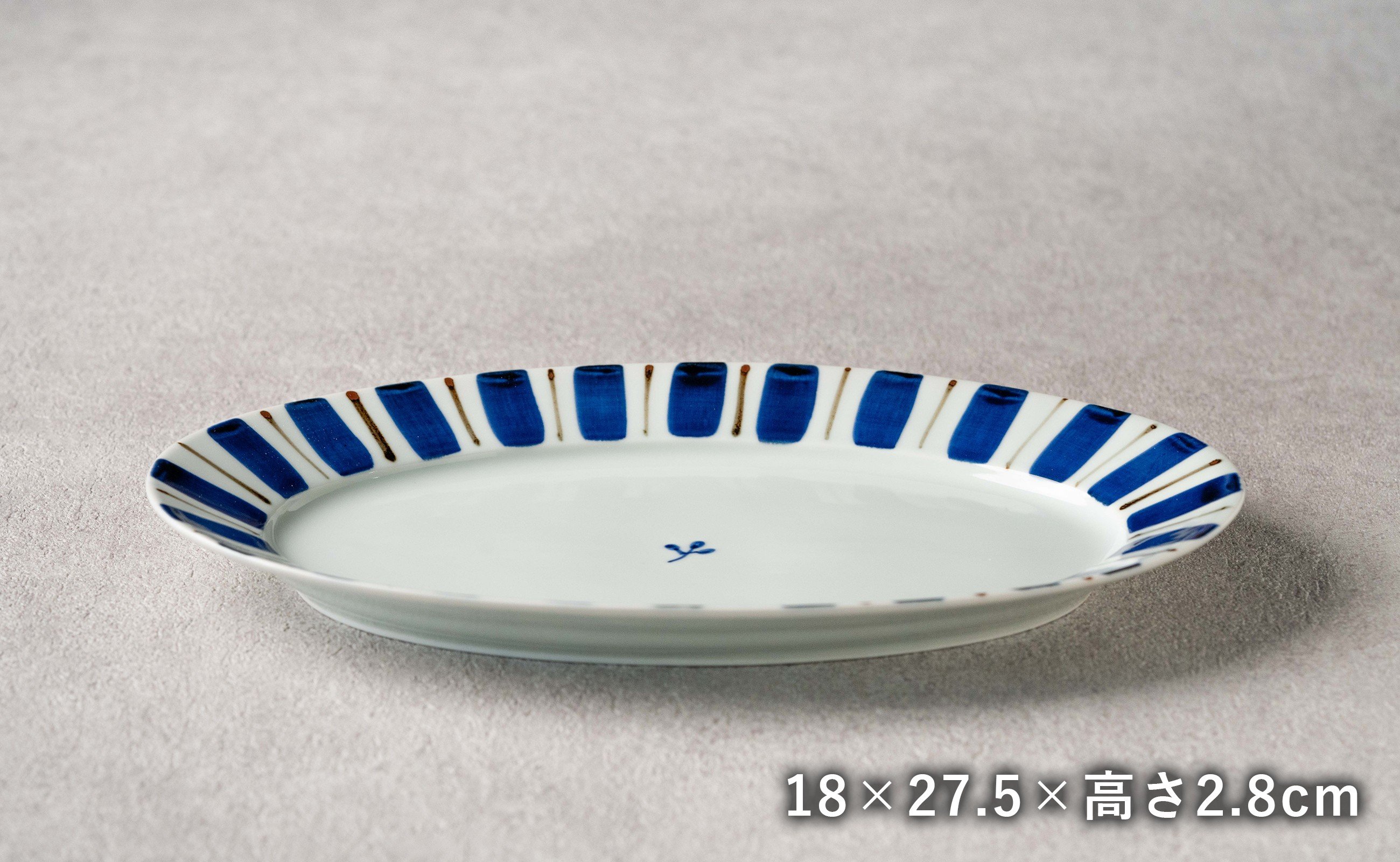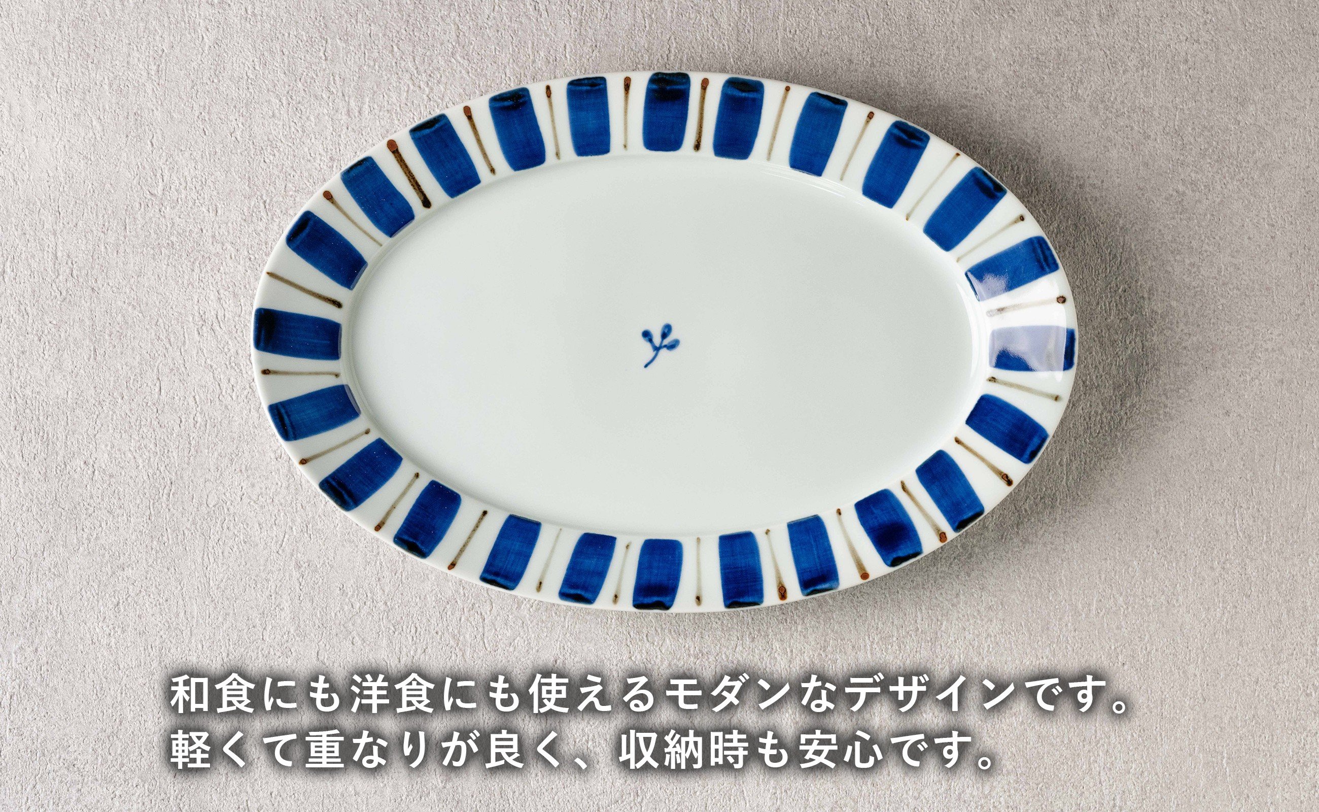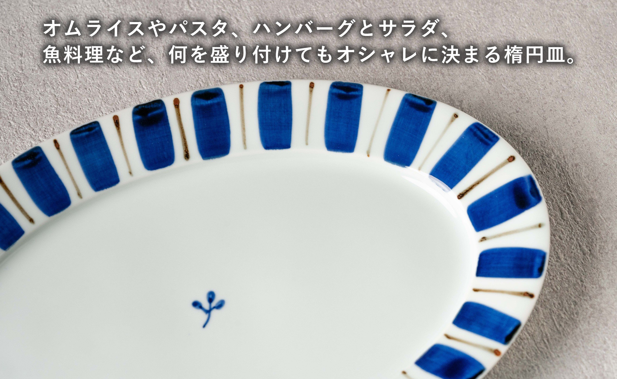 - 【カネアオ】有田焼 リム楕円皿(大)2枚セット (呉須錆十草) オーバル皿 皓洋窯