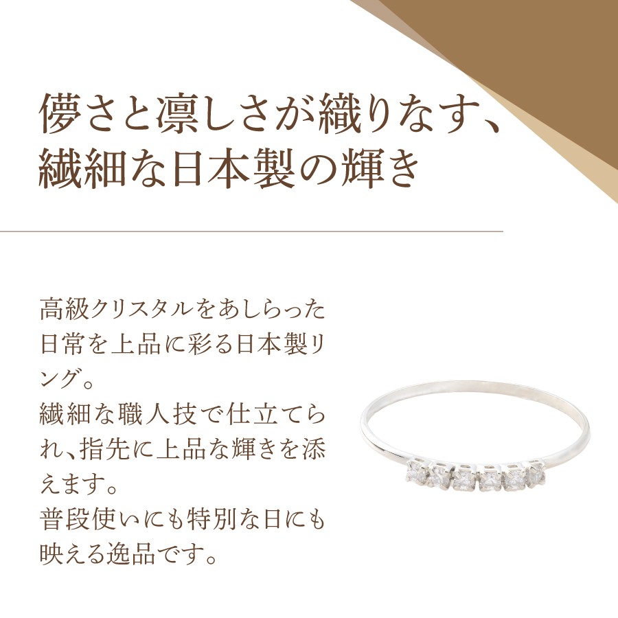 - リング ハーフエタニティストーン 【選べるカラー シルバー/ゴールド/ピンクゴールド】 アクセサリー 指輪 真鍮 クリスタル 金属アレルギー対応 ニッケルフリー ハンドメイド 山梨 富士吉田