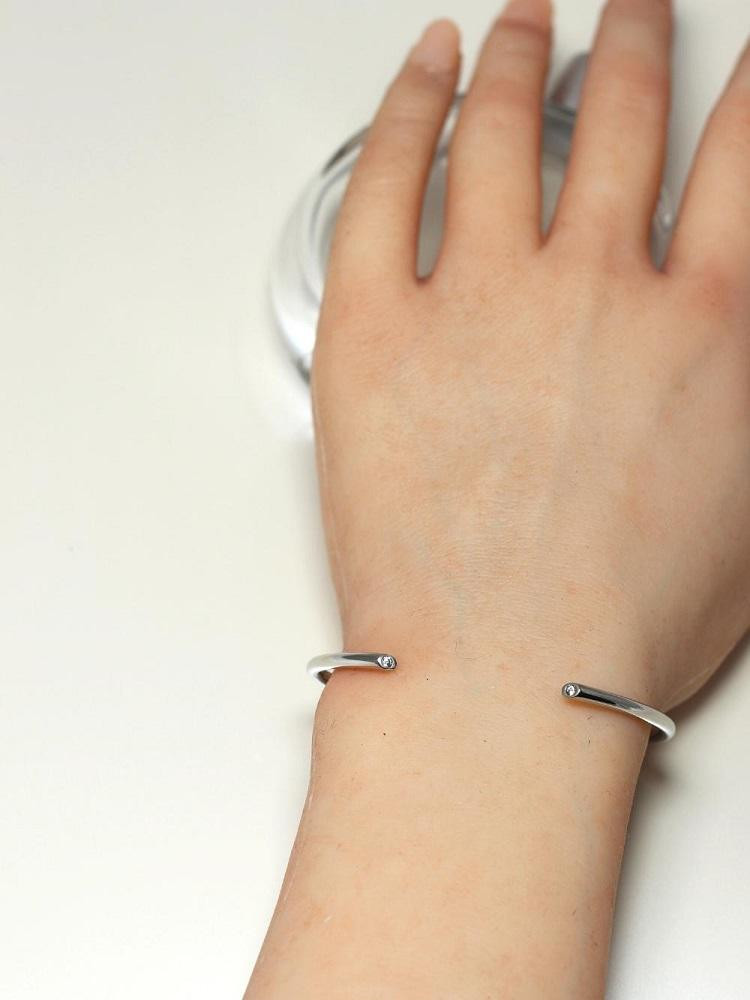 - 【SILVERプラチナコーティング】ダイヤモンド2粒が密かに輝くバングル 遊び心ある大人アクセサリー 人気の大人カラー SV-B005