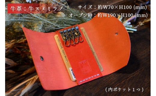 - キーケース スリム 【レッド】【革 牛革 キーケース 手縫い 雑貨 おしゃれ オリジナル レザー職人 手縫い フウネレザーファクトリー】 [BFAJ012]