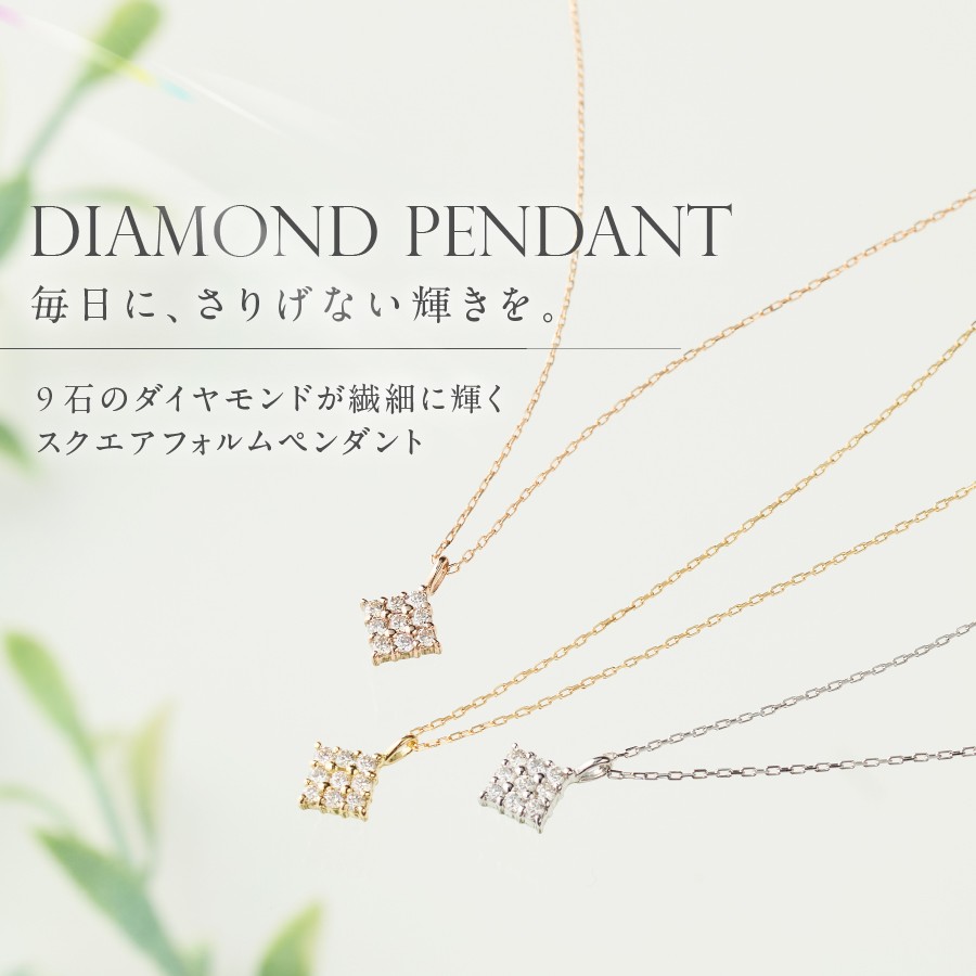 - ダイヤモンドペンダント(スクエア) 選べる地金 【PT(プラチナ)/K18イエローゴールド/K18ピンクゴールド】 【MJ-1146/MJ-1147/MJ-1148】 ペンダント ダイヤモンド ジュエリー ネックレス ダイヤ アクセサリー 品質保証書付き 山梨 富士吉田