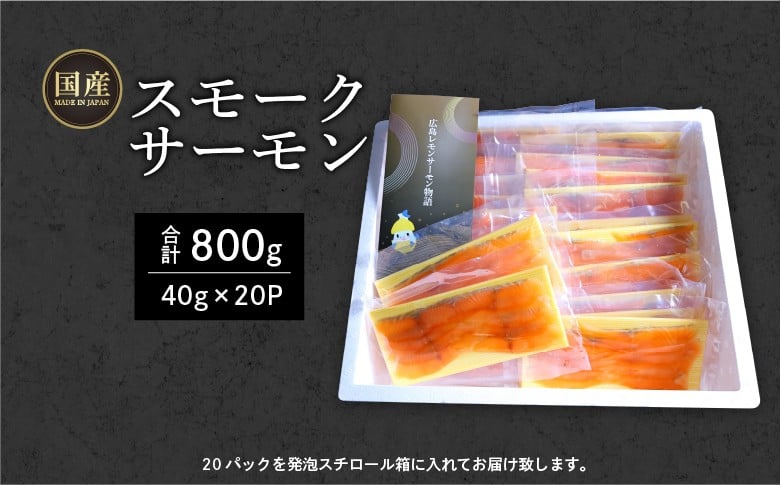 国産サーモン スモークサーモン 切り落とし 800g (40g×20P) 小分け パック 広島レモンサーモン|国産 冷凍 真空パック 燻製 スモーク 切落し 800g 広島県産 特産品 グルメ 鮭 サーモン サケ さけ 魚 骨抜き 骨なし おかず 酒のあて [1951]
