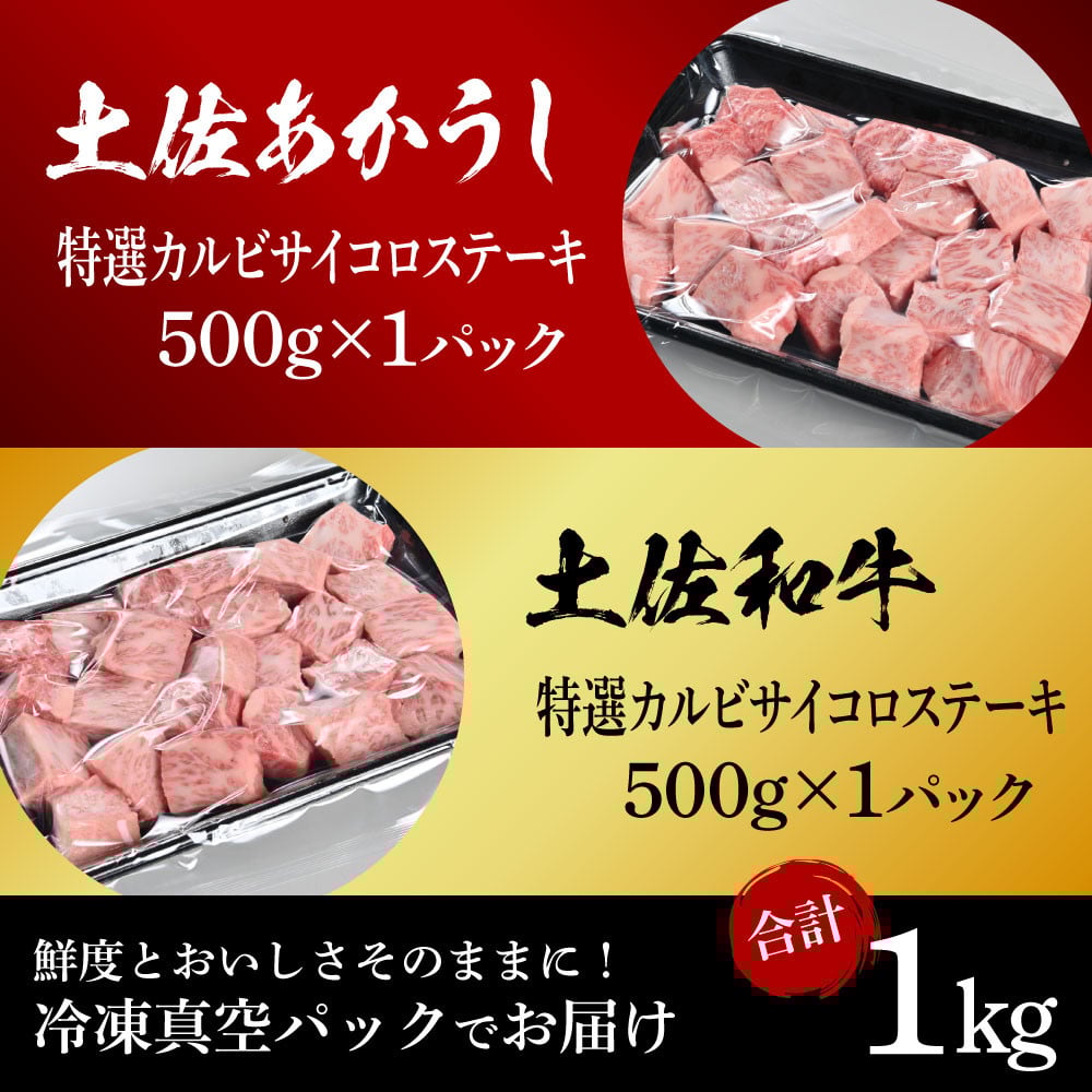 土佐あかうし&土佐和牛2種食べ比べ(500g×2パック)1キロ 1kg 特選カルビサイコロステーキ 特選 カルビ サイコロステーキ 牛肉 赤牛 和牛 国産 エイジングビーフ エイジング工法 熟成肉 熟成肉ステーキ 焼肉 焼肉・バーベキュー 焼肉用