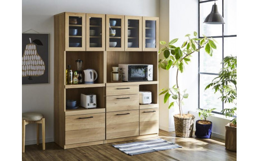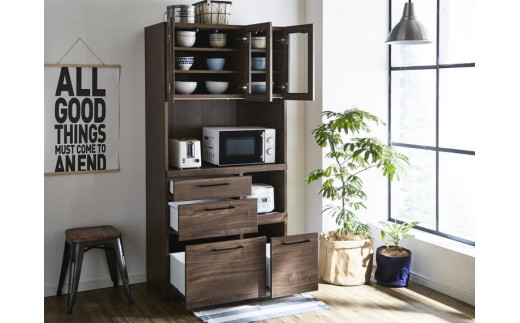 【開梱設置】 紗々 キッチンボード 幅90cm レンジボード レンジ台 完成品 カップボード キッチン収納 90幅 国産 大川家具 日本製 ナチュラル ブラウン