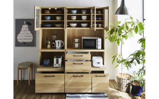 - 【開梱設置】 紗々 キッチンボード 幅90cm レンジボード レンジ台 完成品 カップボード キッチン収納 90幅 国産 大川家具 日本製 ナチュラル ブラウン