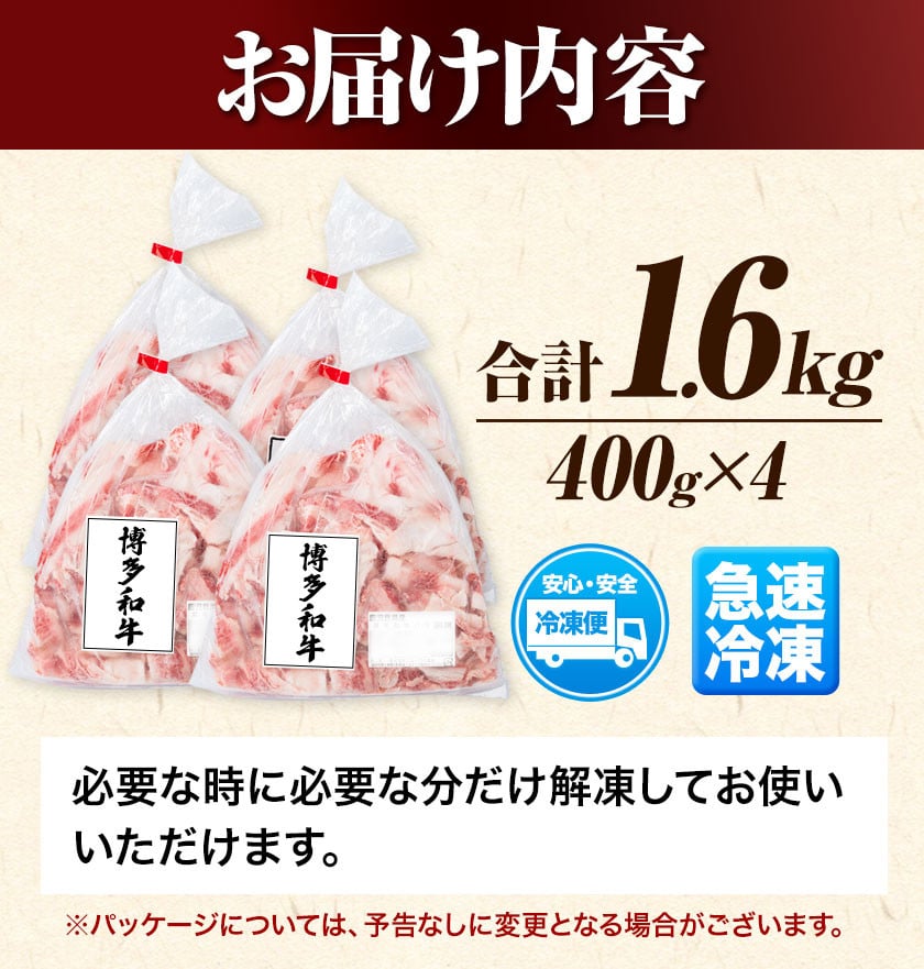 博多和牛バラ肉切り落とし 訳あり 1.6kg 400g×4 脂身 《60日以内に出荷予定(土日祝除く)》切り落し 切落とし 牛肉 肉 牛 牛丼
