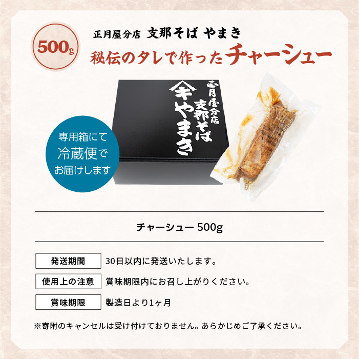 - 正月屋分店「支那そばやまき」秘伝のタレで作ったチャーシュー 500g 正月屋 チャーシュー 肉 豚肉 焼豚 グルメ ラーメン ラーメン店 セット 中華そば お取り寄せ ご当地 おすすめ お中元 お歳暮 ギフト 二本松市 ふくしま 福島県 送料無料 【支那そばやまき】