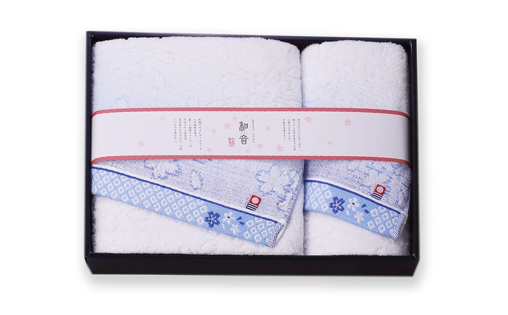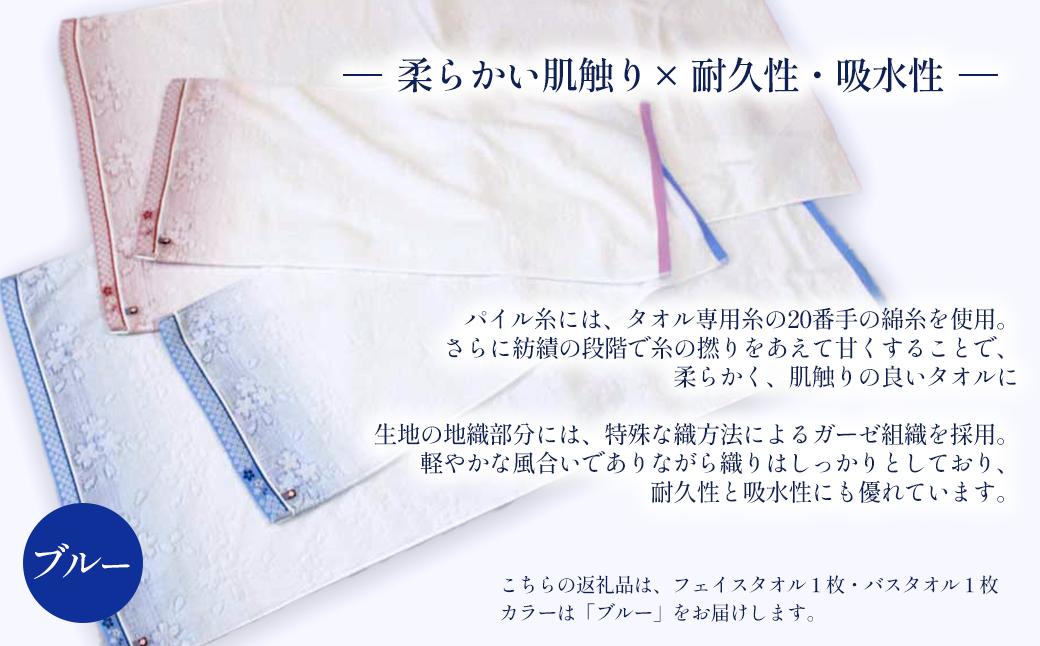 - 今治タオルブランド認定品 なごみね桜 フェイスタオル1枚・バスタオル1枚(ブルー柄) | タオル セット 今治タオル 愛媛県 西条市