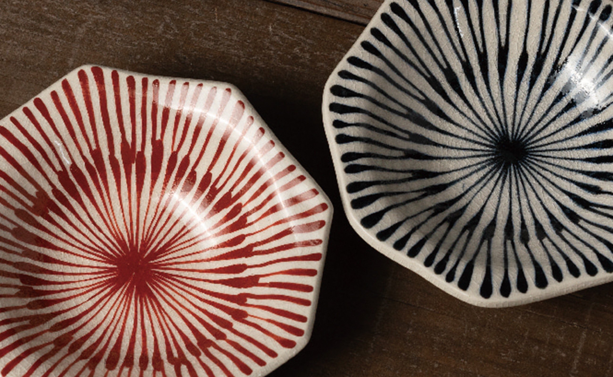 - 【セット】 有田焼 手描き 染付 重ね十草 たたら八角取り鉢 2枚セット (赤・青) 喜鶴製陶