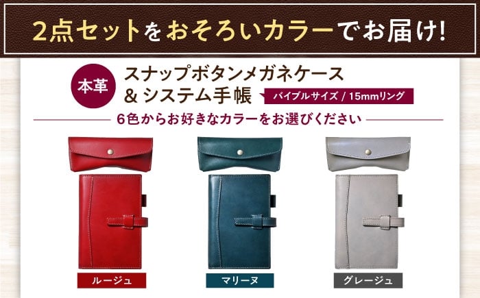 本革バイブルサイズシステム手帳(15mmリング)とスナップボタンメガネケースセット 滋賀県長浜市/株式会社ブラン・クチュール [AQAY456]