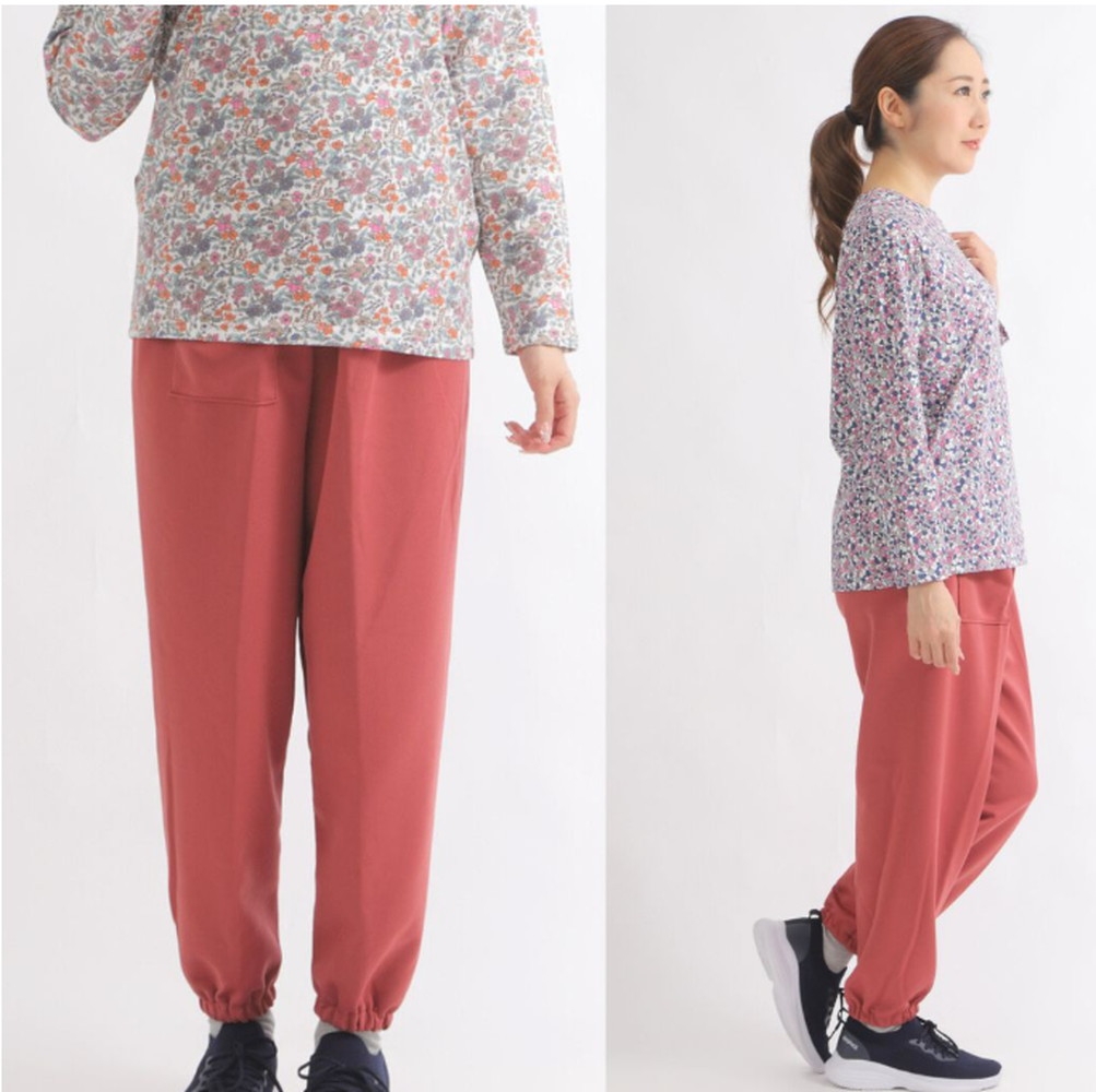 - もんぺ レディース エンジ 裏起毛 無地 / シニア ファッション レディース 裏起毛 パンツ あたたかい もんぺ 高齢者 パンツ ズボン ボトムス サルエルパンツ 冬 日本製 ウエストゴム 介護 ニコニコの森 広島県 No.1185