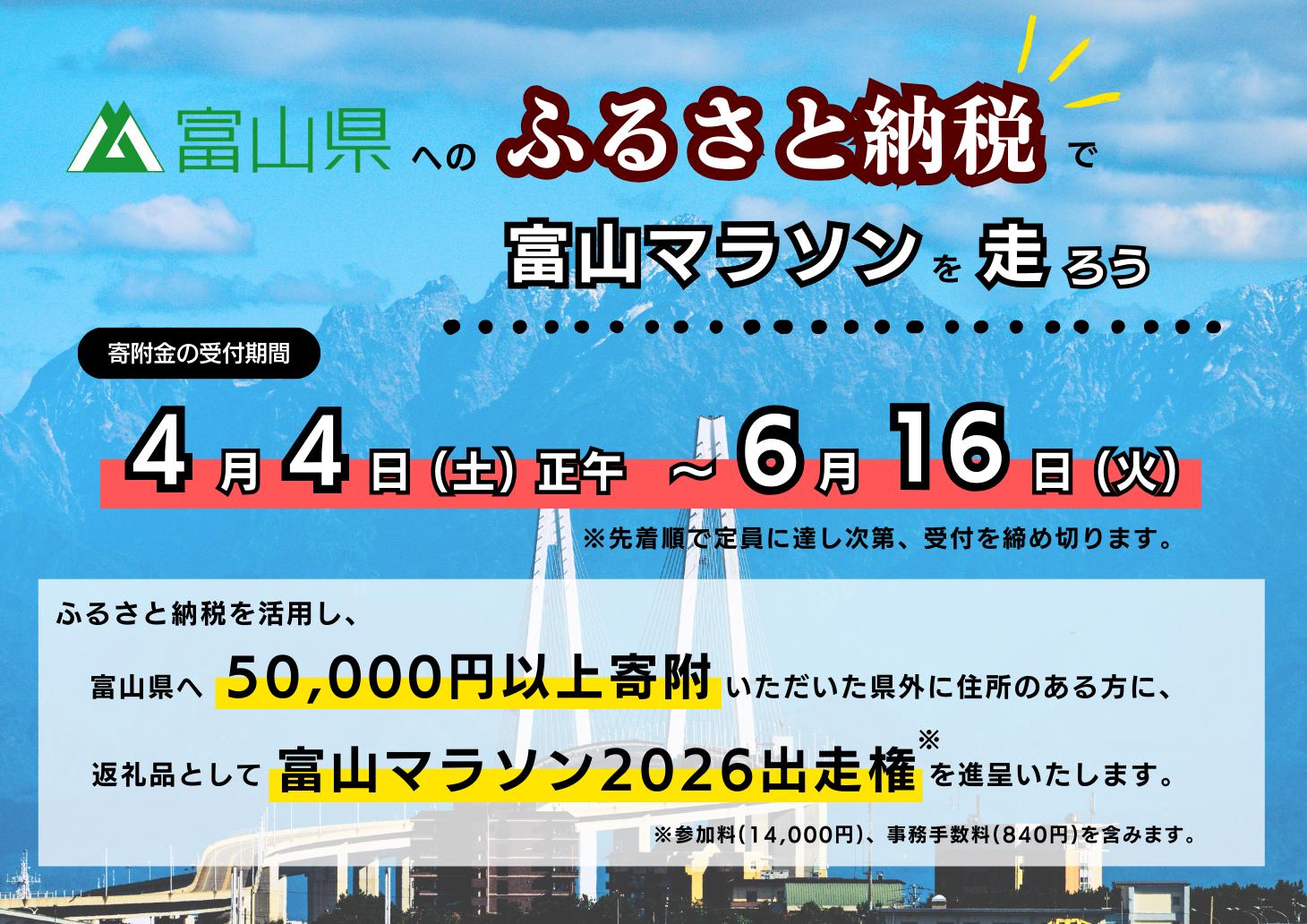 - 「富山マラソン2026」出走権(1人分)