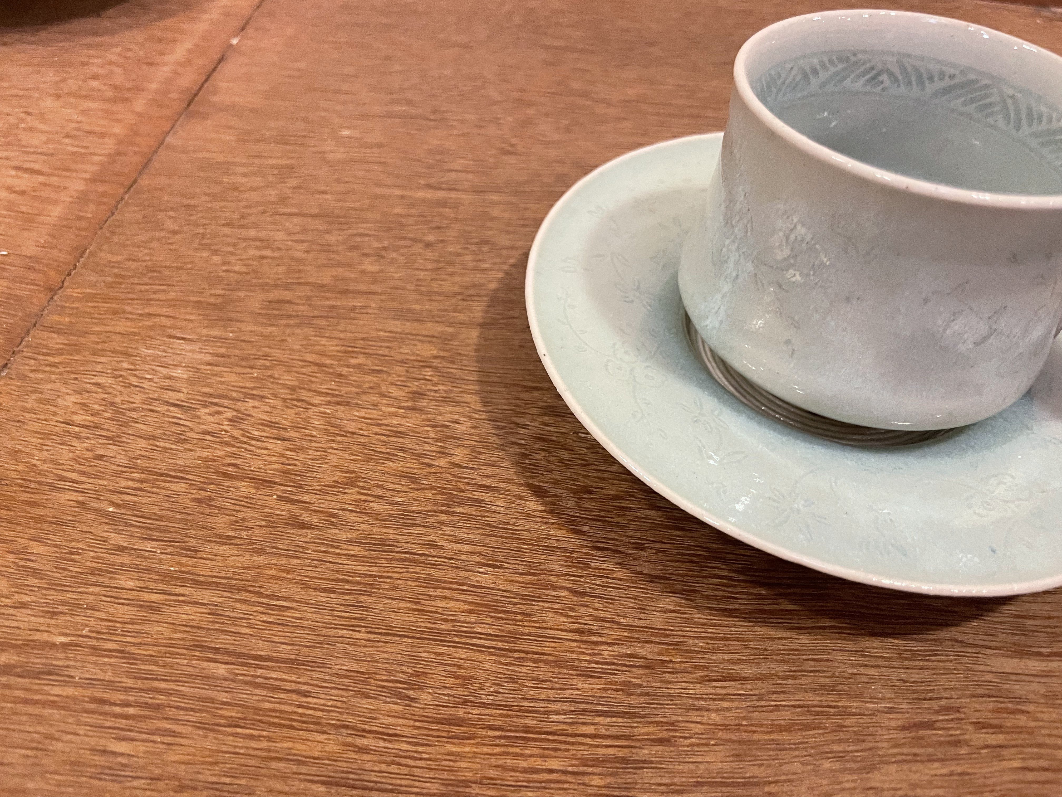 - 【岡本修一】唐津焼/青白磁花文コーヒーカップ&ソーサー