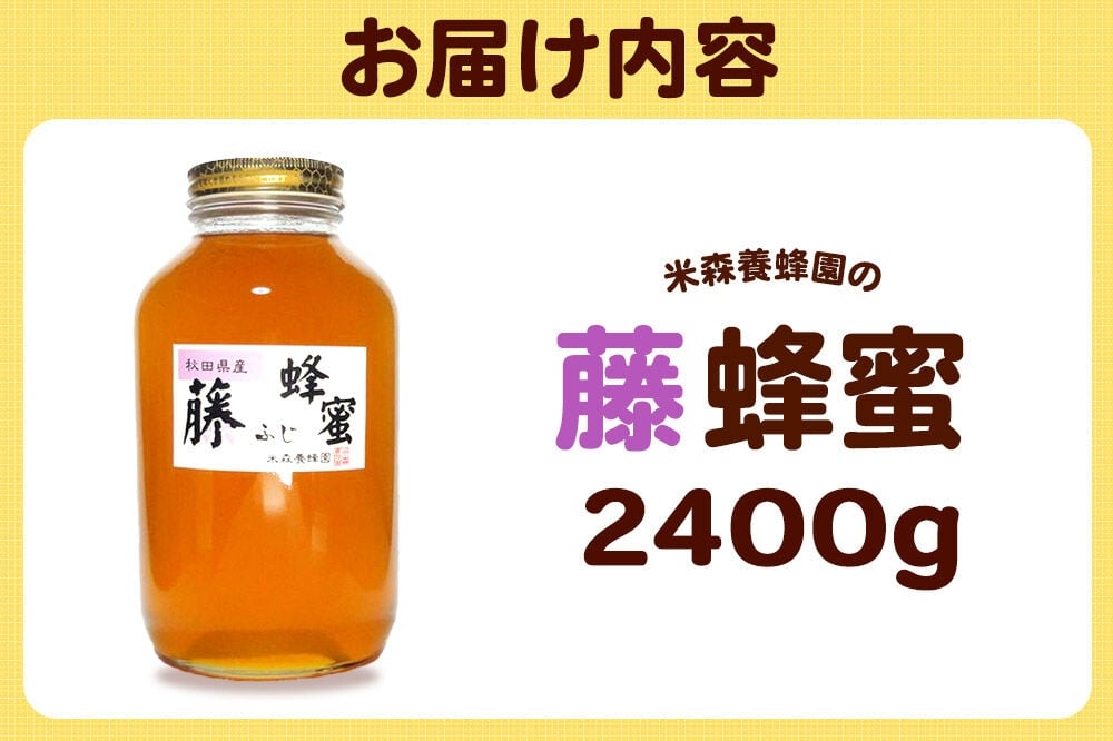 - はちみつ 藤蜂蜜 国産 2400g×1本 秋田県産100% 秋田白神の天然蜂蜜 米森養蜂園 [はちみつ 天然 藤蜂蜜 2400g1本 蜂蜜 国産 ハチミツ ハニー 養蜂 白神山地 自然 花の香 大容量 希少 稀少]