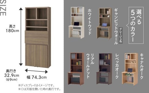 ライティングデスク HDG/D/R/S/C 75D(W743 D329(690) H1800mm)シンプル 家具 収納 本棚 収納棚 木目 完成品 棚 机 つくえ 学習机 パソコンデスク ホワイト ブラウン グレージュ ダークブラウン