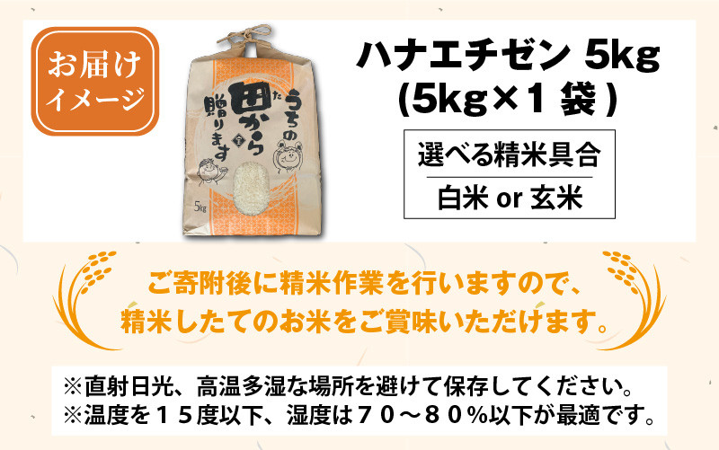 【先行予約】【令和8年産・新米】【白米・玄米選択可】 ハナエチゼン5kg × 1袋 ~本原農園からまごころコメて~ 【2026年9月上旬以降順次発送予定】【お米 白米 玄米 はなえちぜん 5キロ 選べる 精米 ブランド米 ごはん ご飯 おいしい ふるさと納税米 産地直送】 [A-8933]