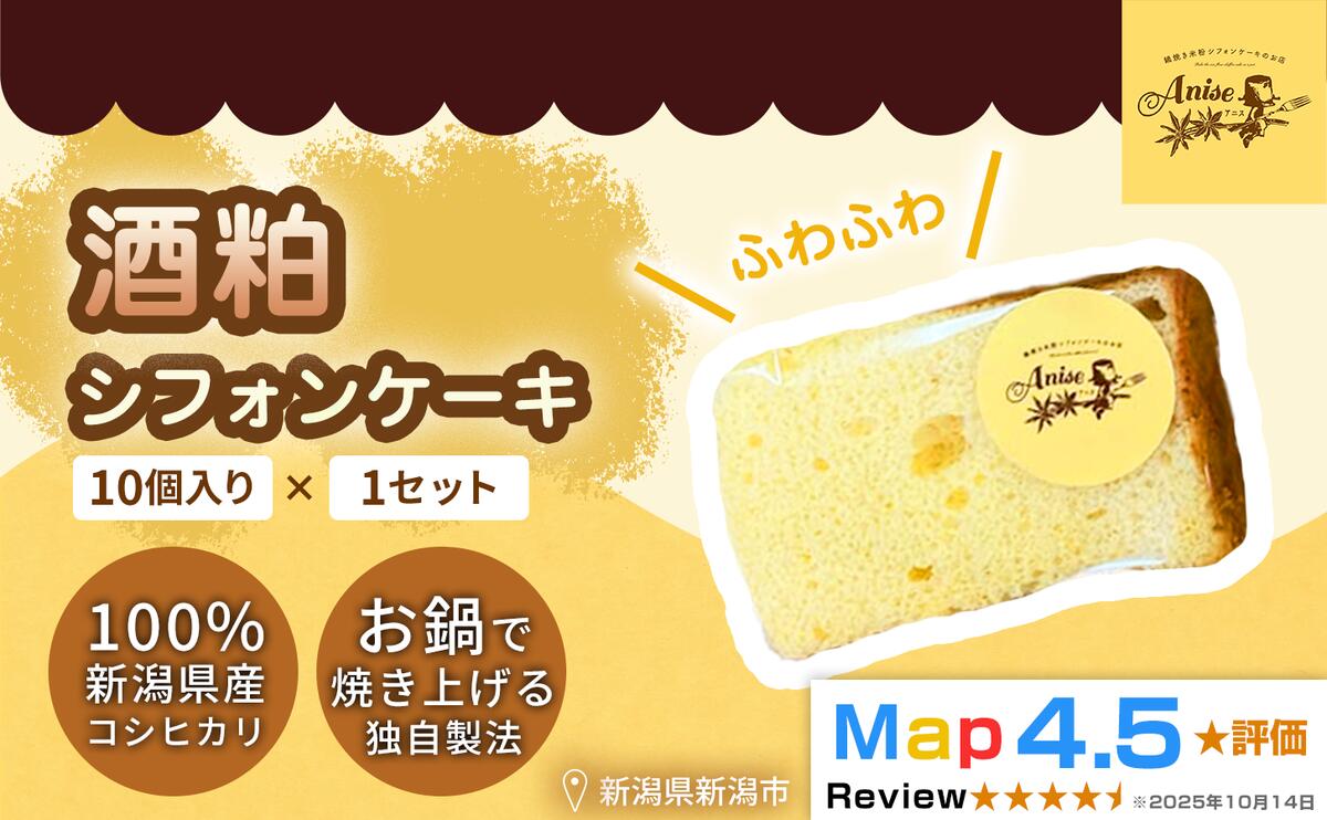 - 【ふるさと納税】【新潟県産米粉100%使用】シフォンケーキ酒粕 1セット(10個) | 鍋焼き グルテンフリー 健康 ヘルシー 焼き菓子 お菓子 スイーツ ギフト 贈り物 新潟市