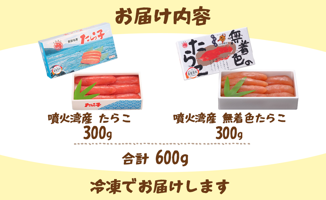 - 丸鮮道場水産 噴火湾産のたらこ二味食べ比べセット 噴火湾産たらこ300g 噴火湾産無着色たらこ300g (計600g)