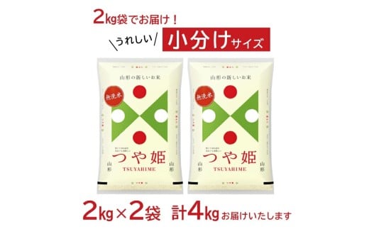 無洗米 つや姫 2kg×2袋 計4kg 山形県庄内産 令和7年産米 庄内米 精米 白米 ブランド米 東北 山形県 遊佐町 庄内地方 庄内平野 小分け 一人暮らし 少人数