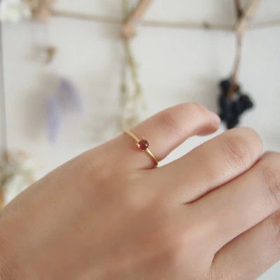 13号 天然石 ガーネット リング (Silver925 18KGP仕上げ) / Maco アクセサリー シルバー ヘアライン加工 プレゼント 奈良県 田原本町
