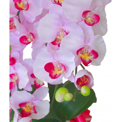- 胡蝶蘭 造花 常滑産陶製鉢に入ったシルクフラワーの胡蝶蘭の鉢植 5本立 CT触媒 ライトパープル【1357824】
