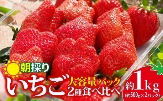 いちご 2種食べ比べ 大容量パック 約500g×2パック 1kg | コク 甘み 朝採れ イチゴ 苺 高品質 たっぷり 新鮮 完熟 旬 ストロベリー 高級 産地直送 果汁 甘い あまい 人気 高評価 高糖度 ごほうび プレゼント 朝採れ やよいひめ ななか 恋みのり あまおとめ あすかルビー 贈答用 群馬県 前橋市