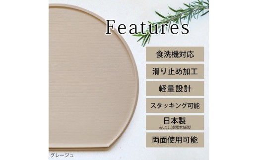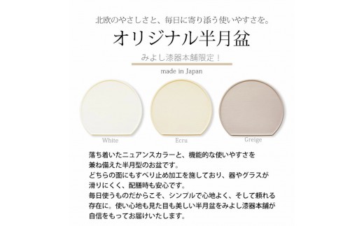- 【選べるカラ―】みよし漆器本舗 半月盆 36cm 食洗機対応 滑り止め 加工 軽量 お盆 トレー 北欧風 洗える リバーシブル 両面仕様