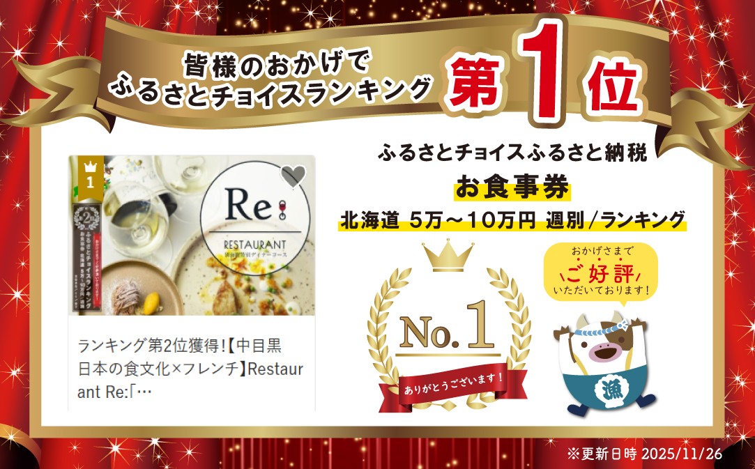 御礼!ランキング第1位獲得!【中目黒 日本の食文化×フレンチ】Restaurant Re:「別海町特別ディナー」食事券1名様【CC0000157】( ふるさと納税 レストラン ディナー ふるさと納税 レストラン ランチ コース料理 ふるさと納税 食事 ふるさと納税 食事券 東京 ふるさと 食事券 ふるさと 食事 ふるさと 食事券 東京 ふるさと納税 東京 食事券 ふるさと納税 チケット )