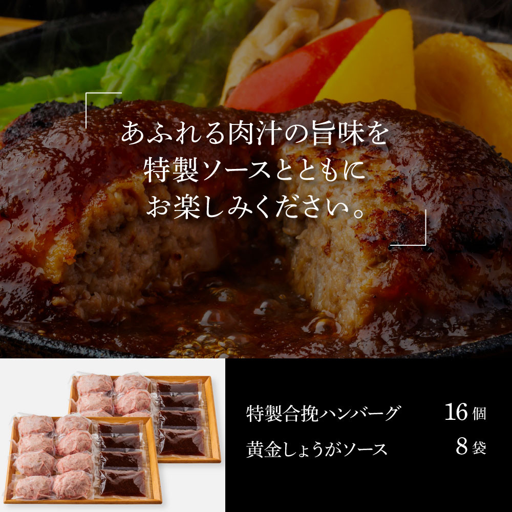 生姜好きにオススメ!老舗レストランの国産牛・美鮮豚ハンバーグ130g×16ケ+黄金しょうがソース×8袋 ハンバーグ セット 32000円 牛肉 豚肉 和牛 美味しい おいしい 小分けパック 個包装 冷凍 食品 無添加 国産