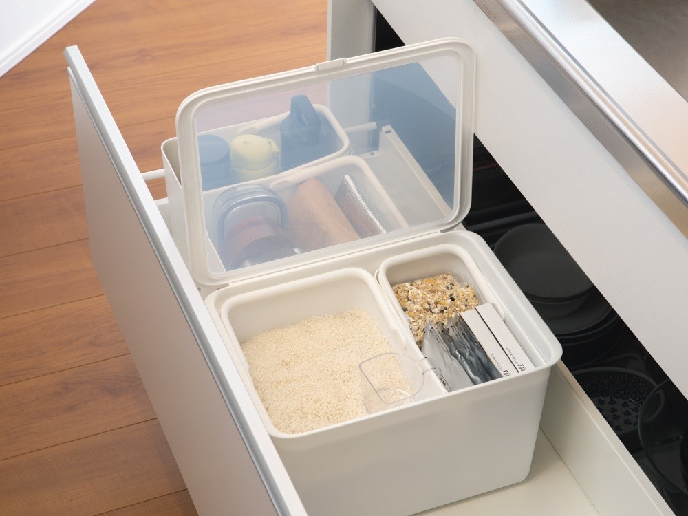 - フタ付きストックケース 米びつ(インナーセット) LBK-50 (3色からお好きなカラーが選べる) / ホワイト グレー ブラック キッチン用品 ストックケース 米びつ お米ストック ライクイット like-it【like104-oya】