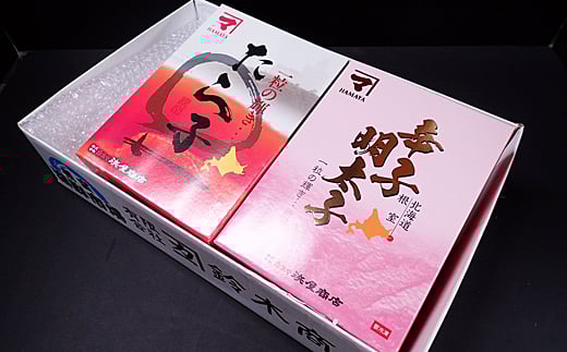 - B-28107 根室海鮮市場<直送>甘口たら子・辛子明太子各1kg(化粧箱入)