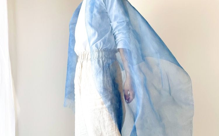 永平寺 草木染 麻レーヨン ストール(青グレー・青茶・青)[B-003003]