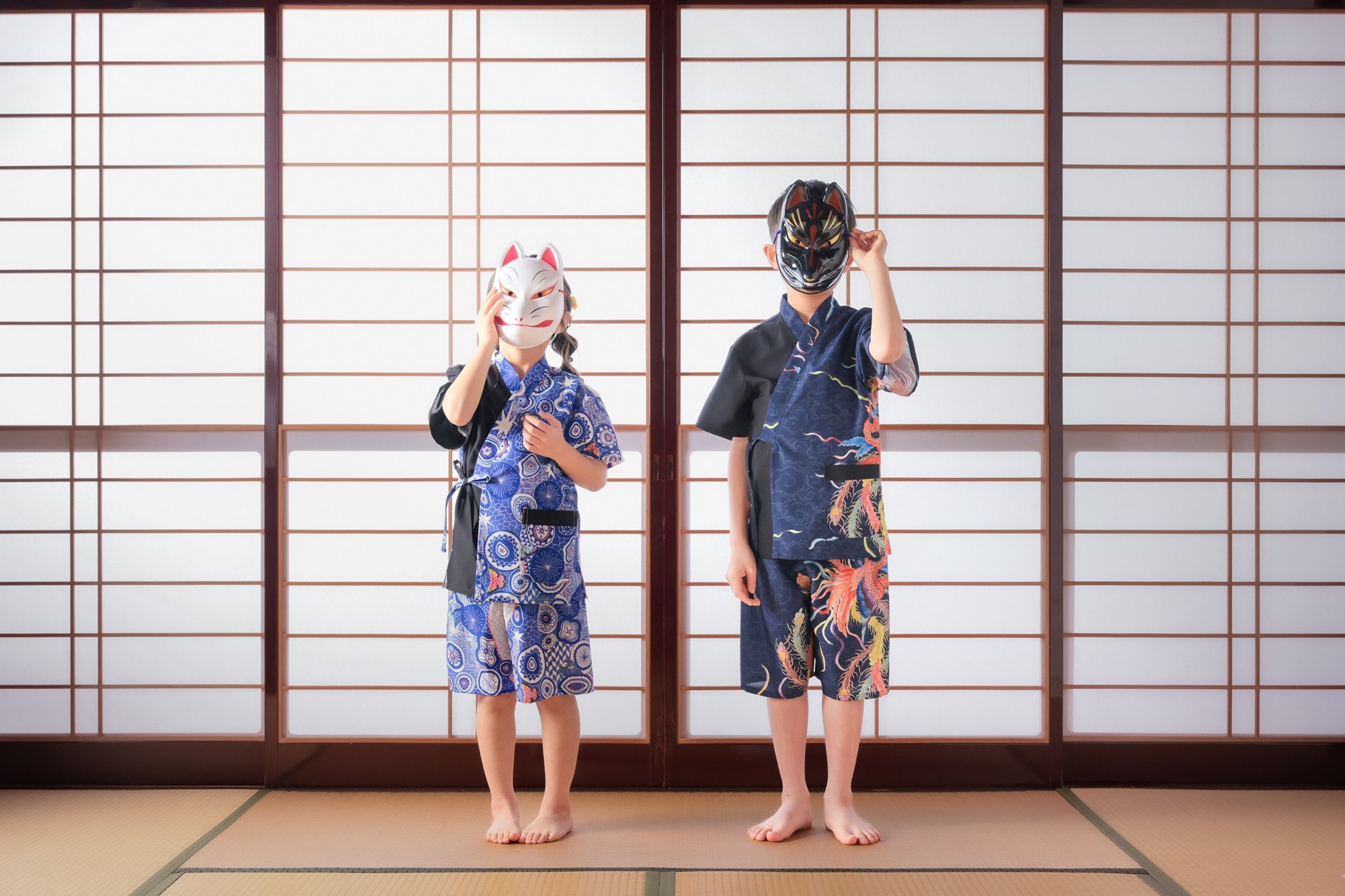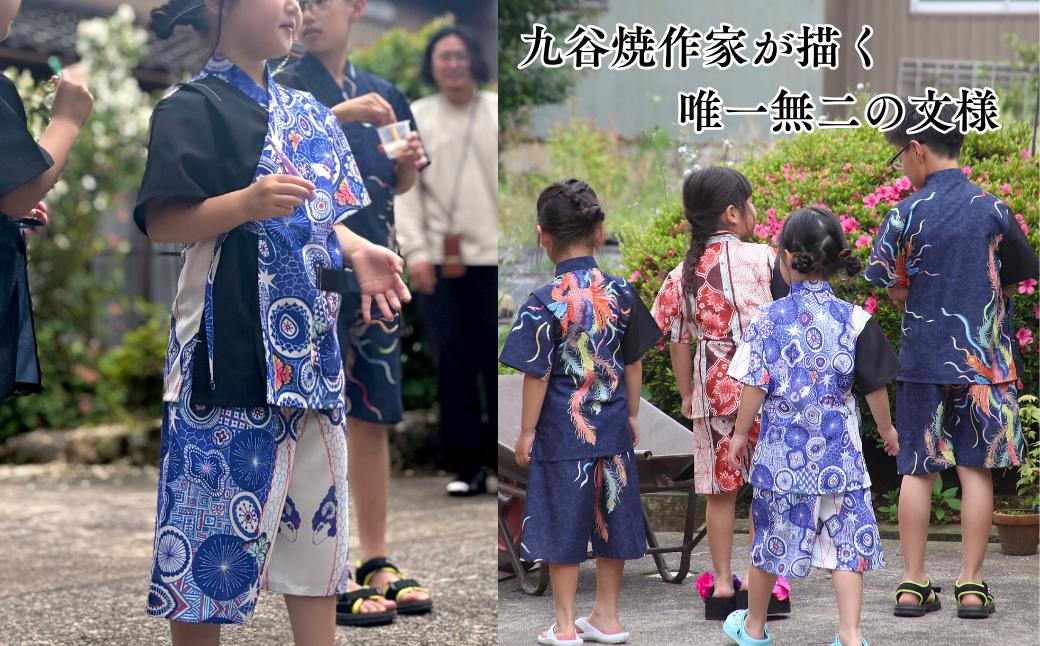 - [KUTANI×KIMONO] キッズ甚平 上下2点セット 夢見紋 (選べるサイズ 110-120cm/130-140cm) | 石川県 小松市 【デクシオーラ株式会社】