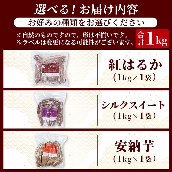 - 選べる 種類・容量 冷凍 焼き芋 1kg~2kg!薩摩あま蜜完熟焼き芋(紅はるか・シルクスイート・安納芋)【フレッシュジャパン鹿児島】霧島市 国産 熟成 鹿児島県産 さつまいも 紅はるか シルクスイート 安納芋 冷凍焼き芋 焼芋 やきいも A-180 A0-338 K-101