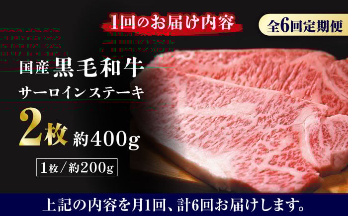 - 【6回定期便】熊本県産 黒毛和牛 サーロイン ステーキ 2枚 約400g 牛肉 ステーキ 国産 和牛 A4ランク以上 A4 A5 冷凍 肉 サーロイン ロース 焼き肉 BBQ バーベキュー 霜降り 高級 九州産 熊本産 山鹿市 贈り物 ギフト 送料無料【有限会社九州食肉産業】[ZDQ040]