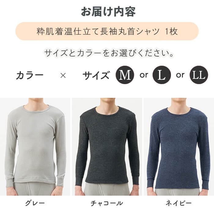 - <期間限定><選べるサイズ/3カラー>粋肌着温仕立て長袖丸首シャツ(1枚/M~LL/グレー・チャコール・ネイビー) 【m84-04】【アズ】