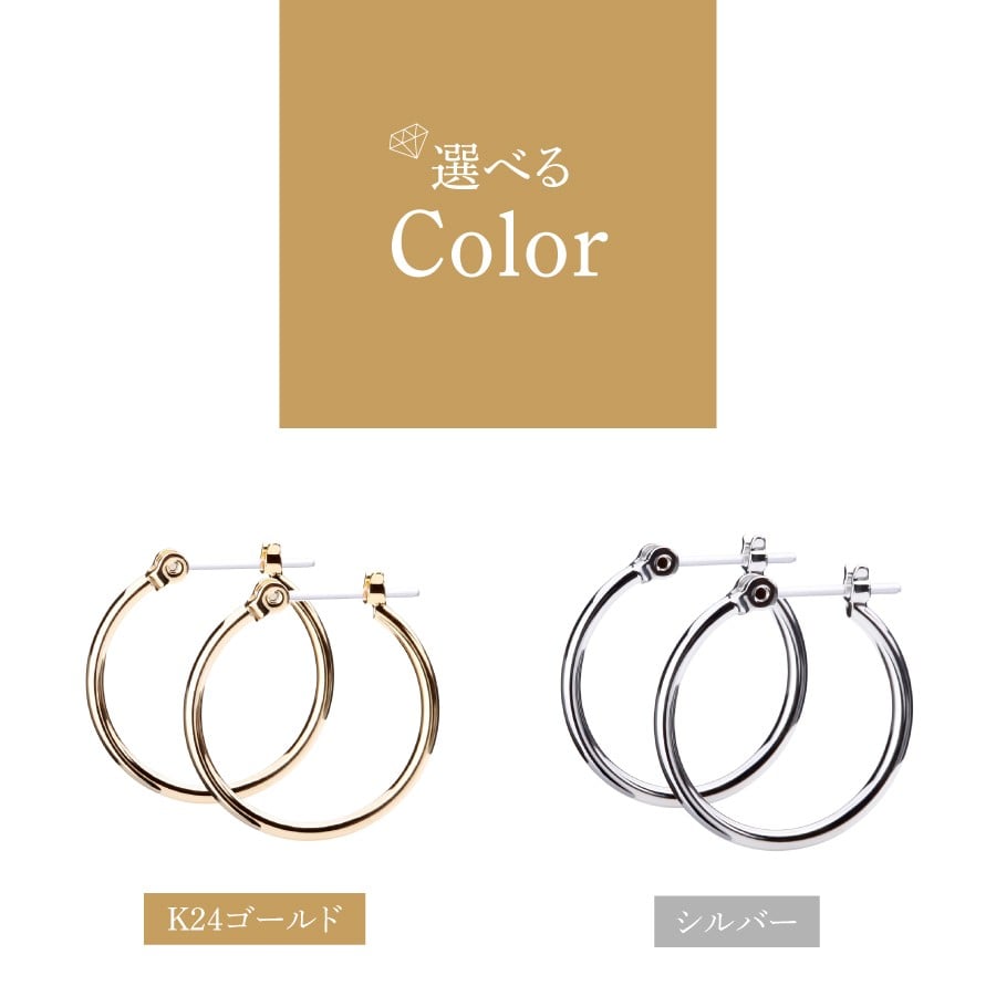 - 樹脂post フープピアス 20mm 【選べるカラー】 (シルバー/K24ゴールド) アクセサリー ピアス K18 フープ 樹脂 ニッケルフリー 山梨 富士吉田