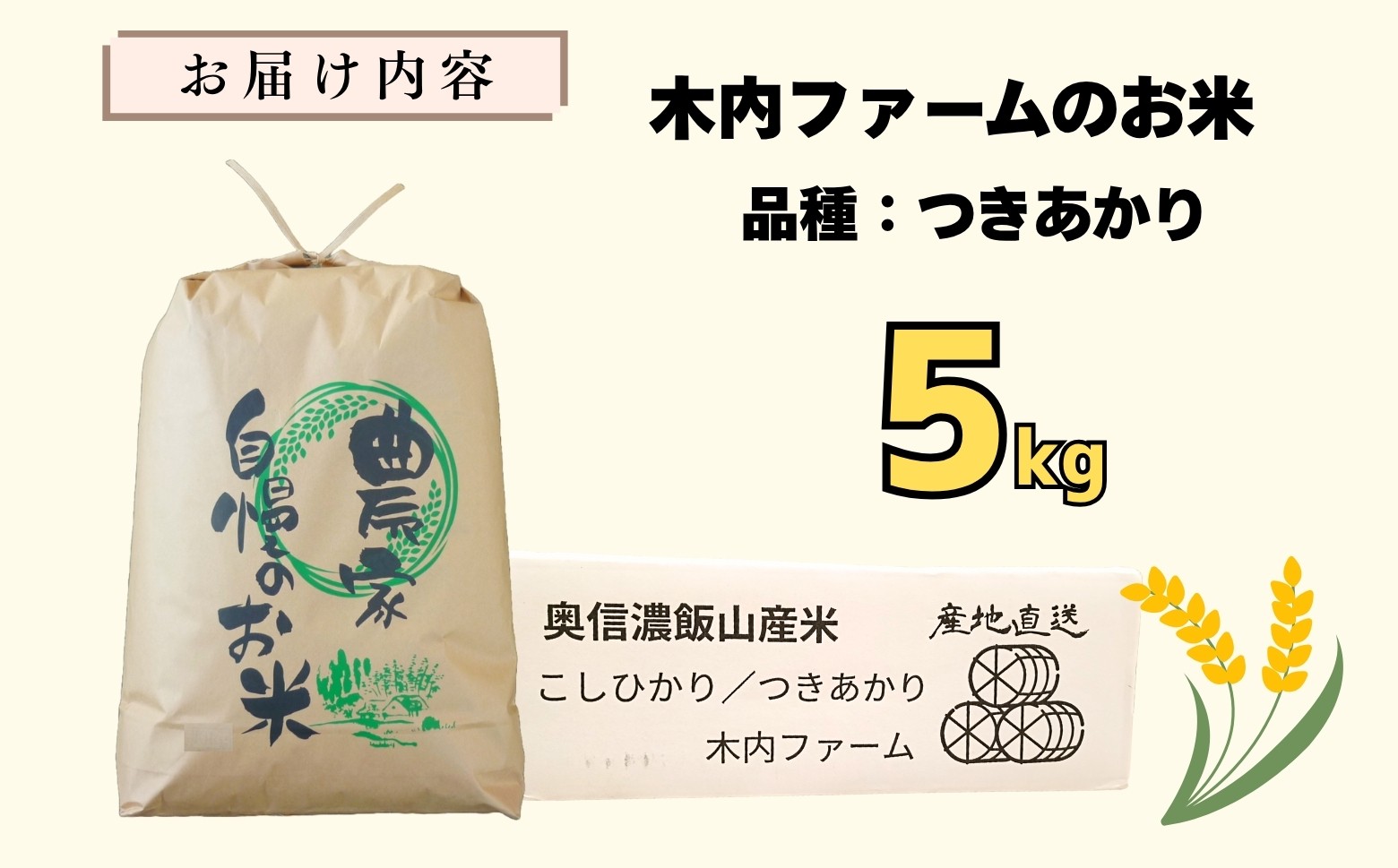 - 【令和7年産】 つきあかり 5㎏ 奥信濃飯山~木内ファームのお米~ 精米 5kg(5kg×1袋) (7-12C) お米 コメ 白米 ご飯 長野県 信州 飯山市 令和7年 つきあかり 産地直送 農家直送