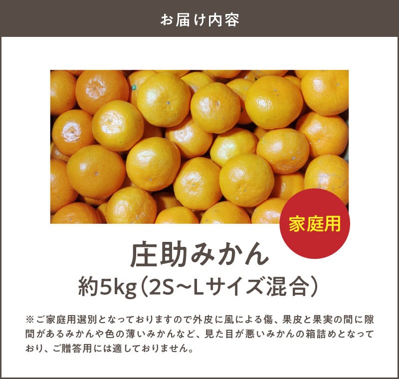 - BK6015_【2026年先行予約】庄助みかん 5kg 家庭用・サイズ混合