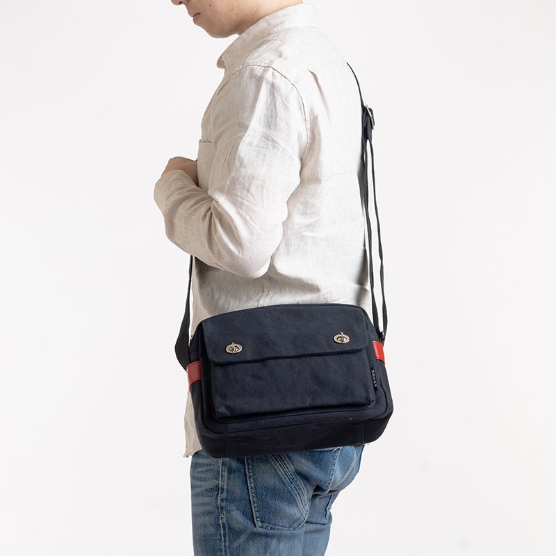 - 「日乃本帆布」 ひねり ショルダーバッグ 〔 色 が 選べる モスグリーン ブラック×レッド キャメル〕 バッグ バック ショルダー 帆布バッグ