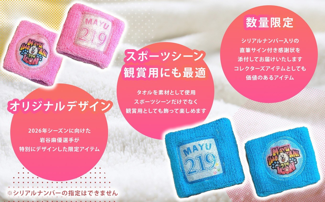 岩谷麻優 2026オリジナル リストバンド 2色セット 【 PINK ・ SKYBLUE 】 | リストバンド ふるさと交流大使 女子プロレス スポーツ 山口 美祢