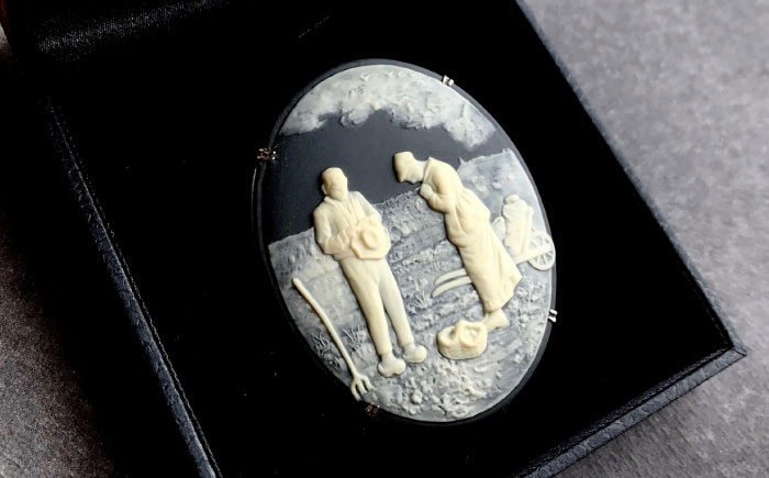 - 【GRAND CAMEO】 ミレー「晩鐘」 ブローチ&ペンダントトップ 特大 / アクセサリー 装飾品 ブローチ ペンダント カメオ アンティーク レトロ / 瀬戸市 / 陶華 [BBCD008]