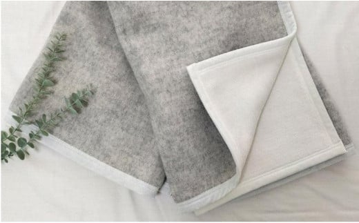 - ウールとコットンのリバーシブルブランケット ひざ掛サイズ(70×100cm)グレー KK-117H GY