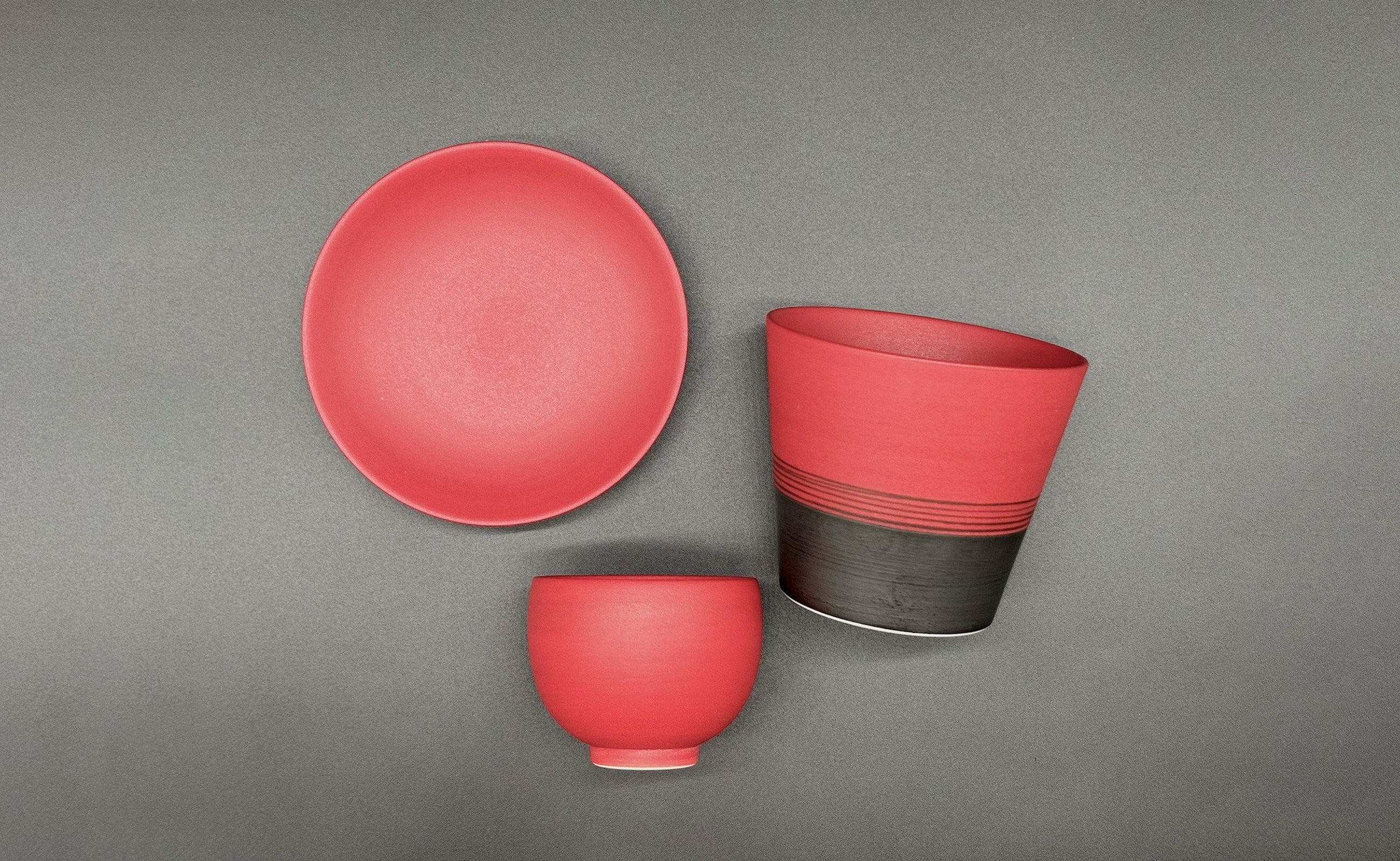 - 有田焼 深紅シリーズ そば猪口 ぐい呑み 小皿 3点セット【上福窯】食器 器 うつわ そばちょこ 酒器 皿 和モダン 赤 レッド 3点 セット 45000円 A45-386