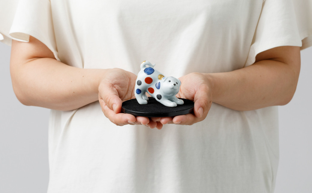 【源右衛門窯】有田焼/染錦水玉犬置物