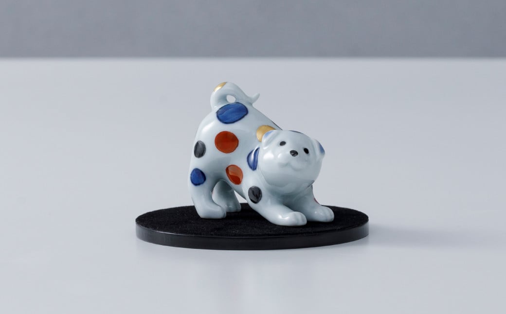 - 【源右衛門窯】有田焼/染錦水玉犬置物
