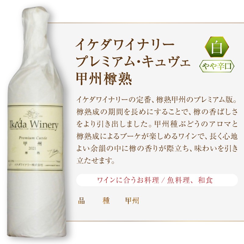 【ふるさと納税】ワイン 白 選べる お届け内容 組合せ 2本 セット 750ml イケダワイナリー 樽熟甲州 甲州エクセレント セレクト白 甲州 白ワイン やや辛口 やや甘口 母の日 父の日 記念日 ギフト 贈答 プレゼント 酒 お酒 山梨県 甲州市 (MG)
