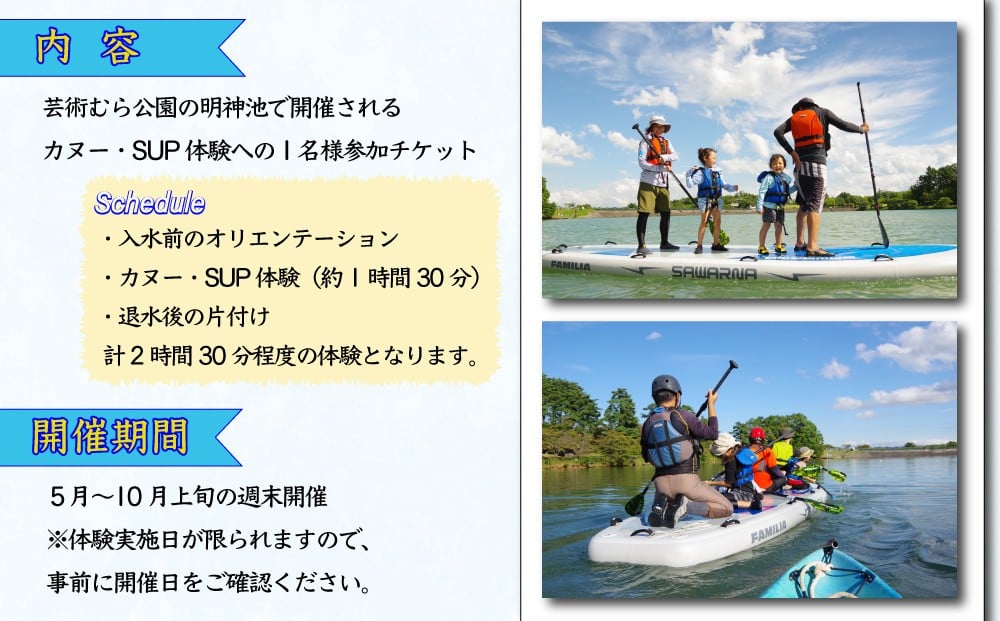 明神池 カヌー・SUP体験1名様体験チケット【身体教育医学研究所】