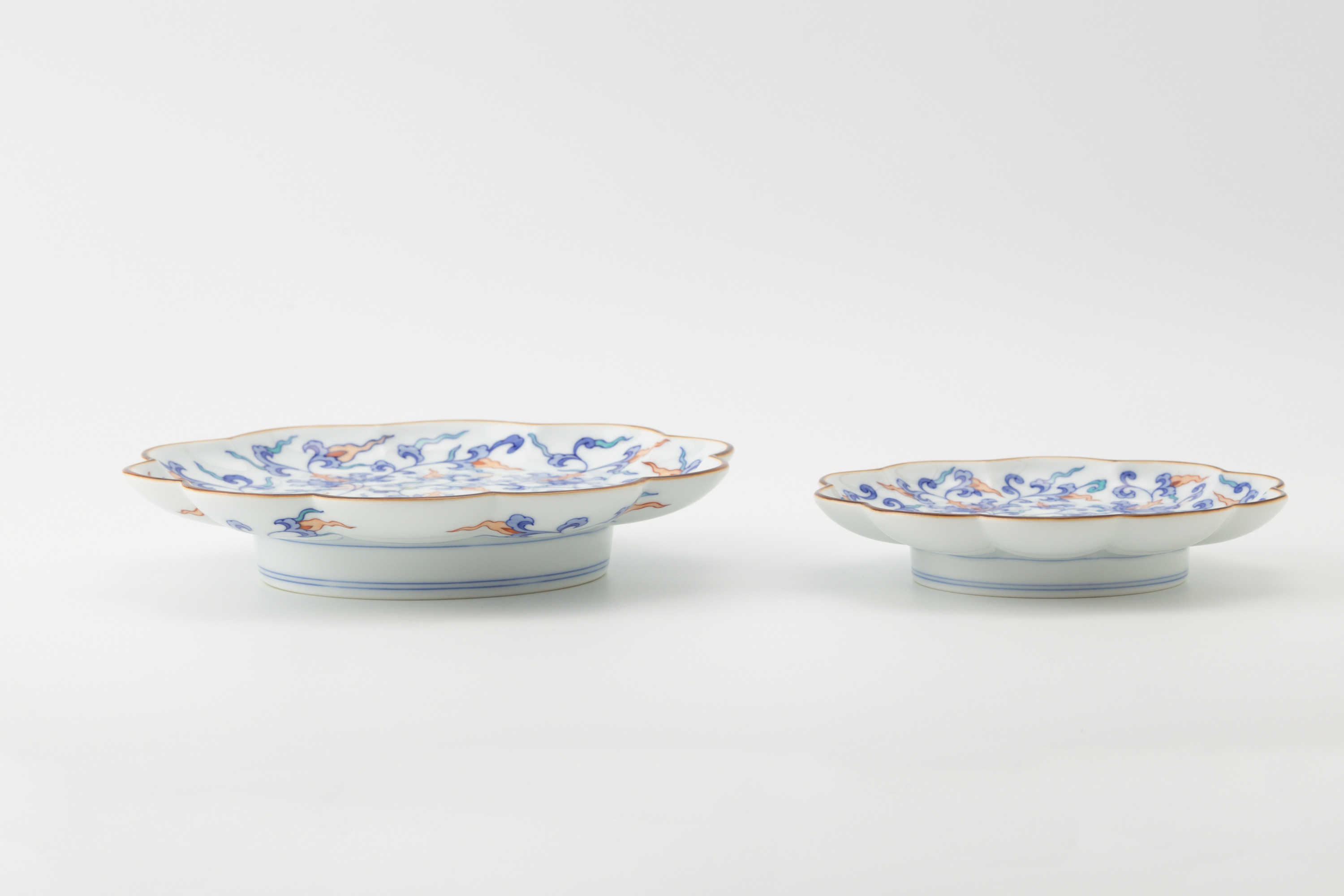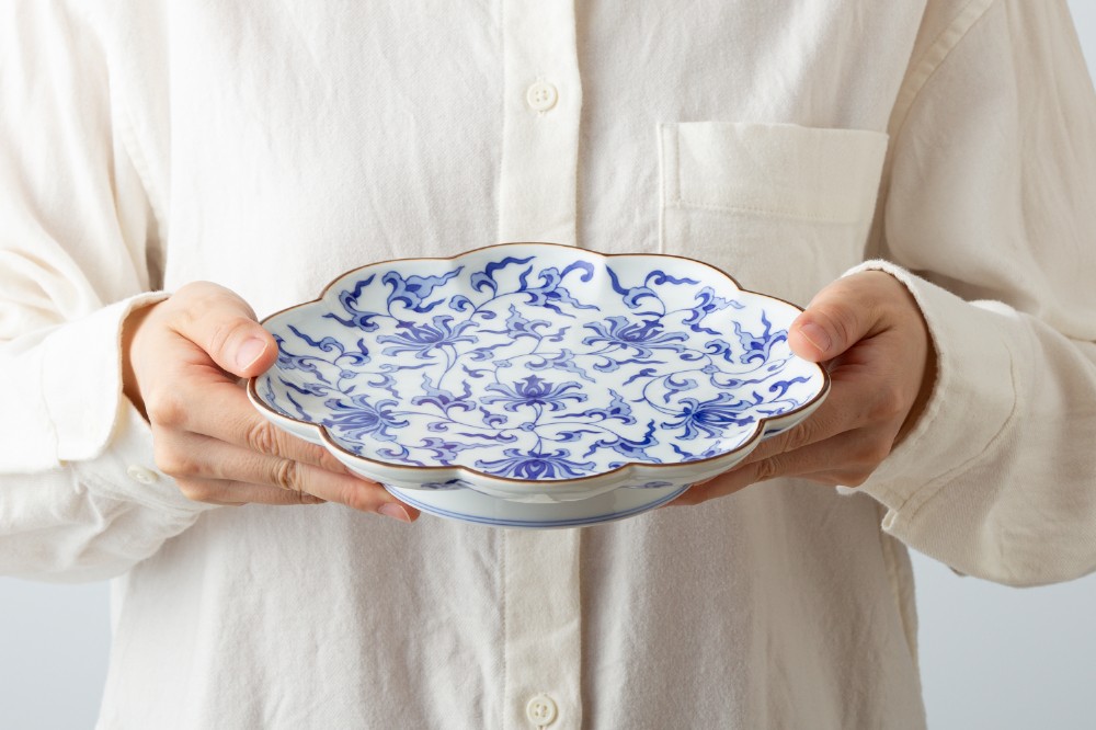 - 【セット】有田焼 染錦花唐草文輪花皿 大小2枚 (青/赤から選べる) 辻精磁社